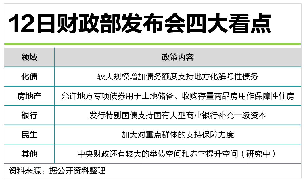 首先,由于增加债务需要一系列流程,因此发布会并没有提到资金规模和各项政策开展时点;但从措辞看,这次逆周期政策规模可能不小。比如“拟一次性增加较大规模债务限额置换方政府存量隐性债务……是近年来台支持化债力度最大一项措施”、“中财政有足够韧劲,通过采取综合性措施,可以实现收支平衡,完成全年预算目标”。