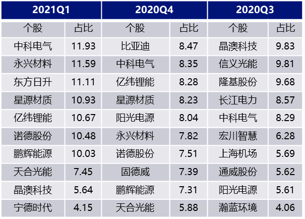 图3:崔宸龙任职产品重仓股变化(截至2021/3/31)