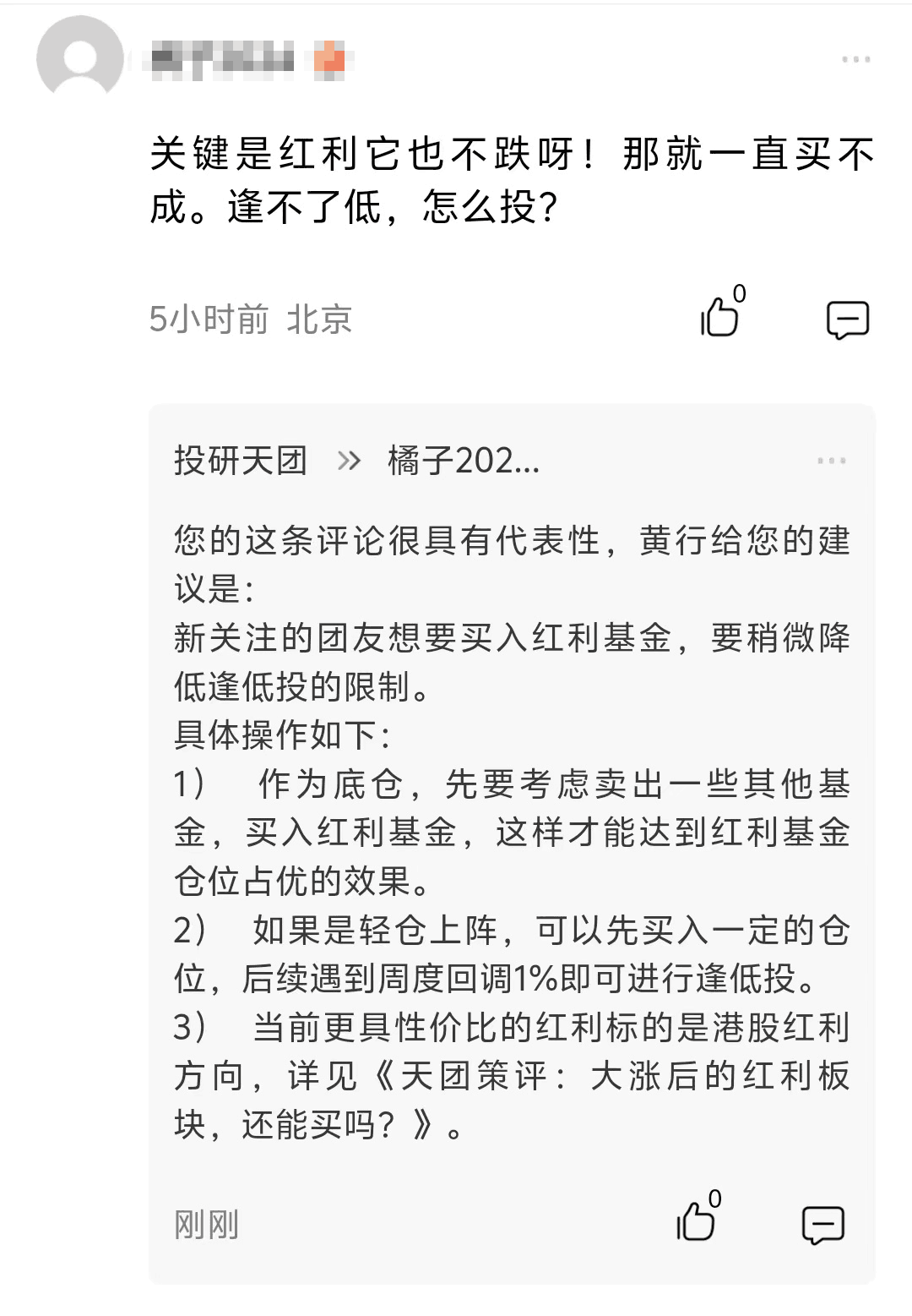第三,于新关注团友想要买红利基金,要稍微降低逢低投限制。
