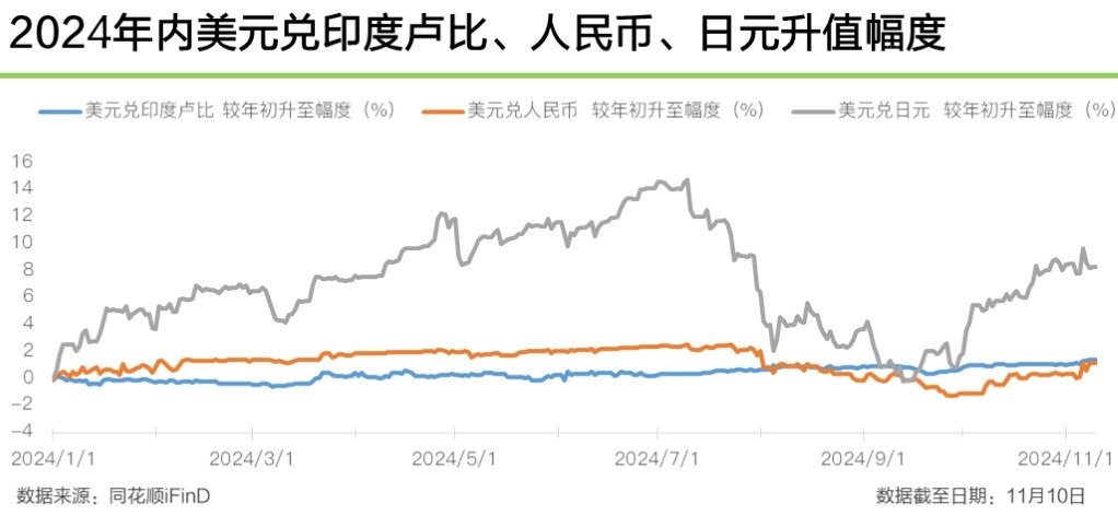 第一个变化已经发生。美债收益率走高之,资金会回流美最近一段时间,人民币、元、印度卢比等非美货币普遍承压,提高了持有非美元资产机会成本,让新兴市场货币承压。
