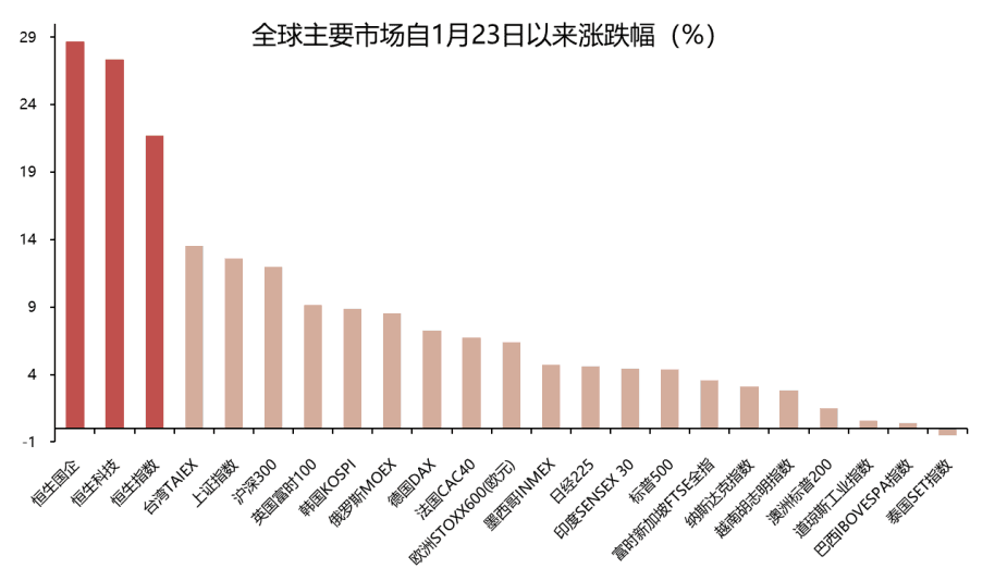 实际,港股从1底以来,在全球市场一骑绝尘!显著跑赢标普500、经225在内全球重要指数: