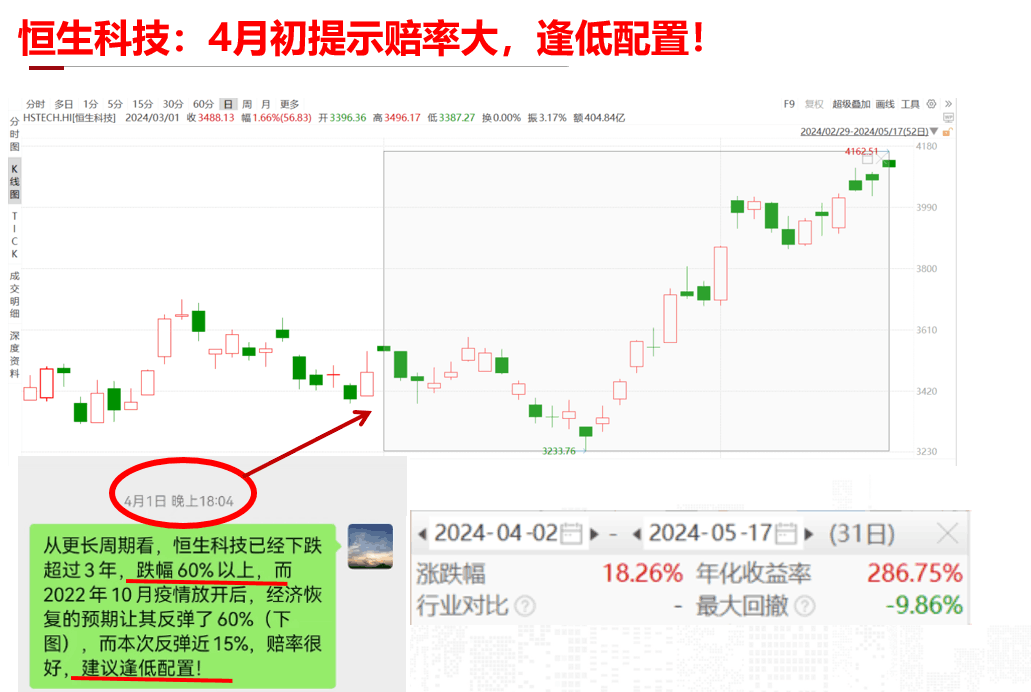 4 中旬以来,随着内产政策落、海外经济预期减弱,做多中相关资产策略持续占优。们4即重点布局港股,走势明显于A股,加之腾讯、阿里巴巴等科技权重股披露财报业绩超预期,显示公司业绩持续向、盈利能力较强,进一步带动了港股科技股涨。