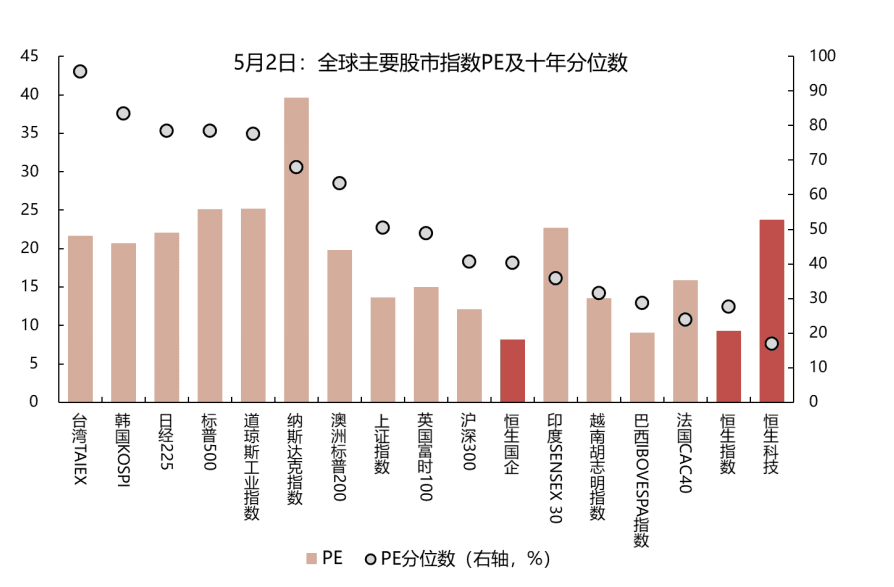 另外,当港股主要指数估值分位数仍然不高,在全球范围内具备配置性价比: