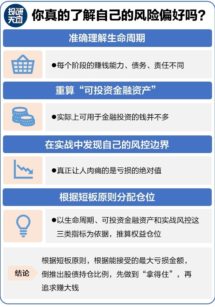 根据短板原则,们可以根据自己能接受最大亏损金额,倒推股债持仓比例,先做到“拿得住”,再追求赚大钱。