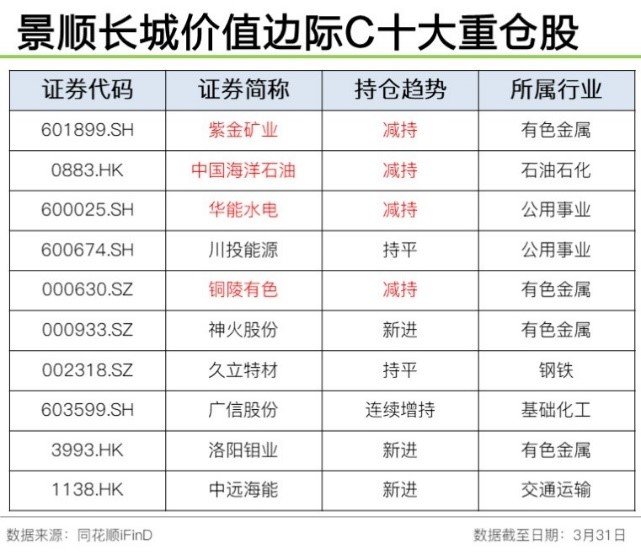 重仓股变化:部分持仓股票因价格涨和基本面变化现了高估迹象,鲍无可这些股票进行了减持,买了竞争力强且估值相便宜有色、交通运输个股。被减持个股主要有紫金矿业、中海洋石油、华能水电、铜陵有色等。
