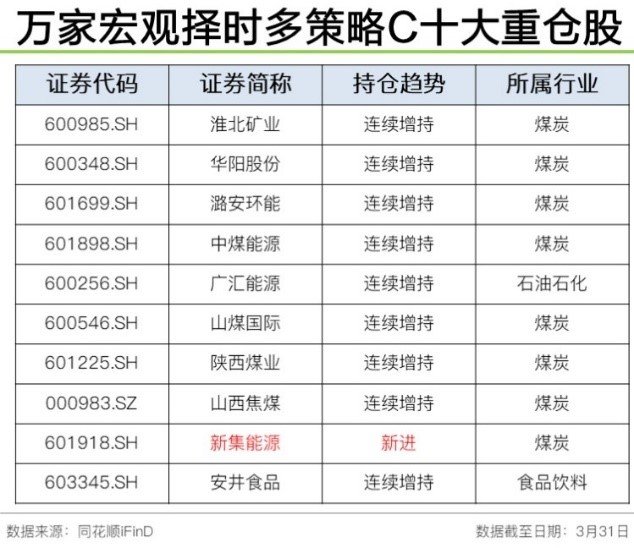 重仓股变化:十大重仓股中,大部分还是老面孔,有八只重仓超一年,仅新集能源是新进重仓股。
