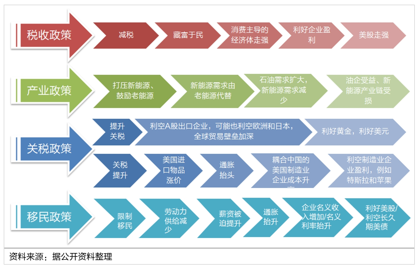 如果特朗普当选,全球资产意味着什么?们根据市场预期,简单梳理了几条可能投资主线,推演一政策到资产关系: