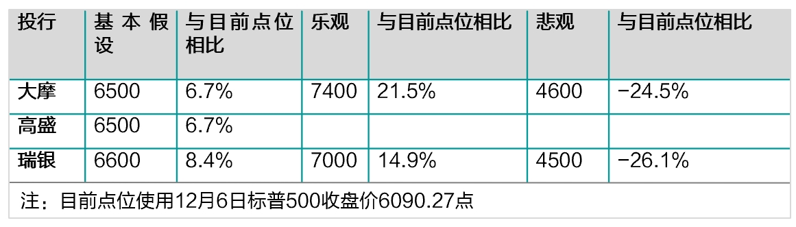 在这种情况,际投行2025年美股给了涨和跌两个方向预测,如图: