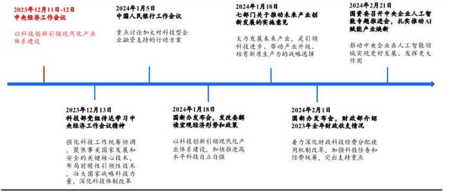 科技之所以能成为阶段主线,除了海外不断事件性因素刺激外,内政策扶持也起了重要作用。去年底以来,“以科技创新引领现代化产业体系建设”被多次提及: