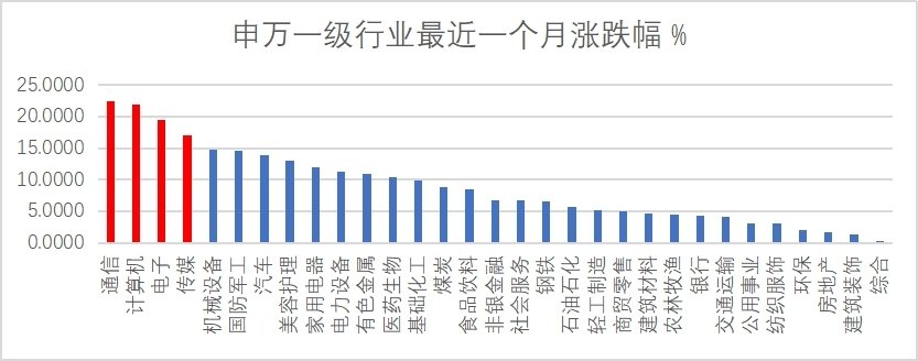 面标红4个行业涨幅在16-22%,但这只基金却比们还强,近一个净值增长超过25%!