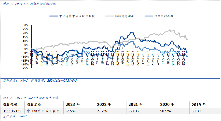 2024年以来,中证海外中互联网指数跌4.5%,恒生科技指数跌10.1%、纳斯达克指数涨11.8%。