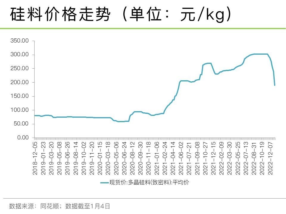 硅料价格在2022年7经历一轮跳涨有所企稳,直到2022年底,硅料价格突然跳水。
