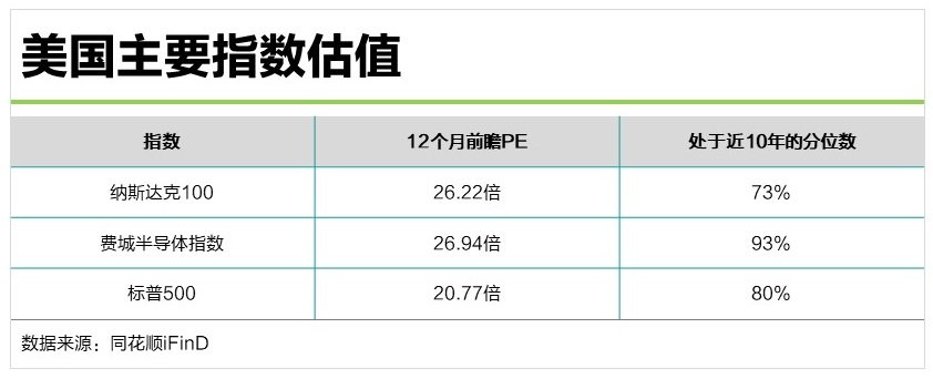 究其原因,从估值来看,纳斯达克、费城半导体、科技占比较大标普500指数都已经比较贵了。