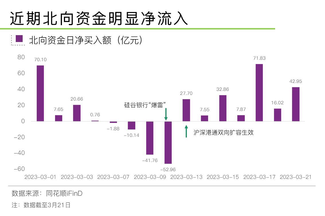 中信建投首席策略分析师陈果近表示,美加息预期明显缓解之,人民币汇率压力明显减轻,这也有利于北向资金流。近期,伴随美债收益率回落和沪深港通扩容生效,北向资金再度明显流。周(313—17),北向资金单周净流147.8亿元,为元宵节单周最高水平。