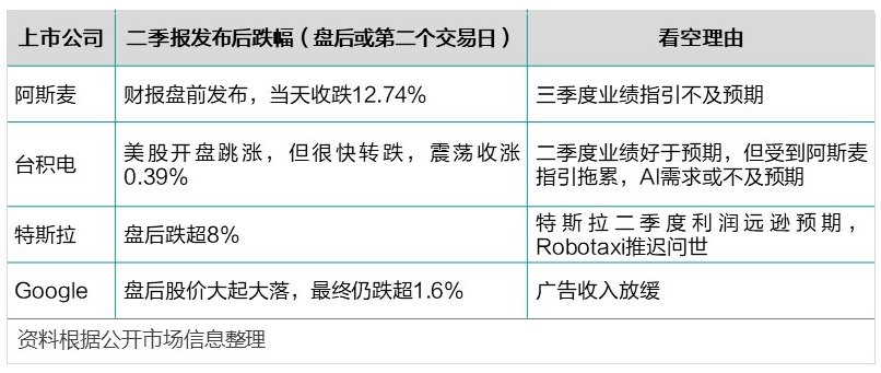 比如,阿斯麦二季报业绩数据很,甚至超市场预期,但公司调降了三季度业绩指引,引发了全球AI公司连环抛售。