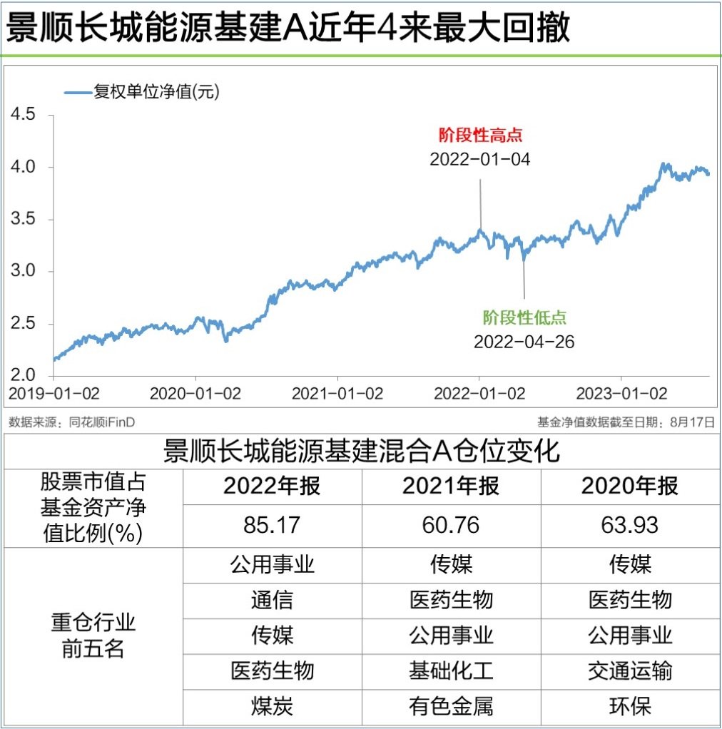 2020年和2021年,景顺长城能源基建混合A股票仓位一直在70%以,由此避过了市场“毒打”。