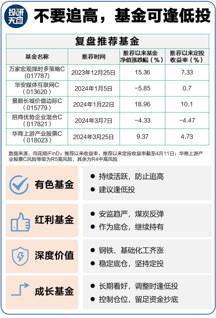 2、石油、有色等较强,但期涨幅较高,建议有色主题基金采取逢低投方法;科技成长赛道长期看,科技成长基金近期调整可视作车时机,逢低投逐步加仓。