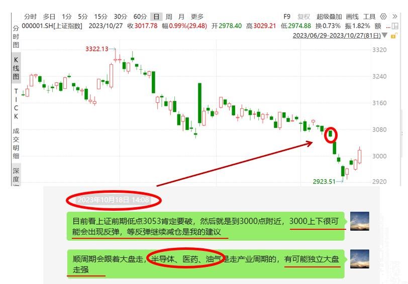 们在今年1018曾给预判:3000很可能会现反弹,建议等反弹继续减仓:
