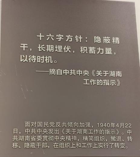 陈列馆中们看到1940年《关于湖南工作指示》中十六字方针: